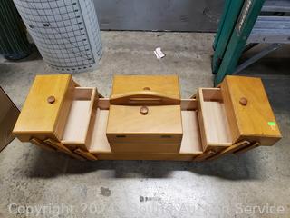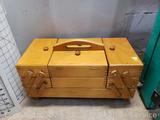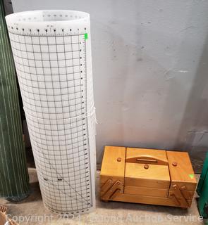 Lot #0077: Nice Wood Sewing Box & 33" x 58" Rotary Cotting Mat