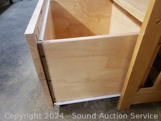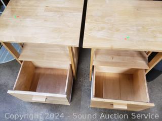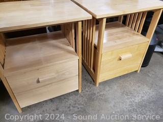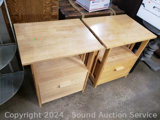 Lot #0033: Pair of Blonde Wood Single Drawer Side Tables