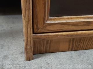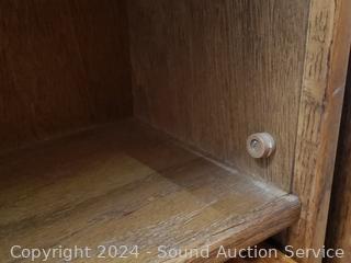 38" H x 24" W x 8" D. Don't see any major issues. Appears to be solid wood construction.