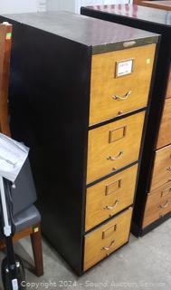 Lot #0023: Vintage "The Victor" 4-Drawer Wood Office File Cabinet