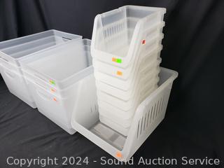 Lot #0023: 15 Various Size Clear Stackable & Storage Organizer Bins