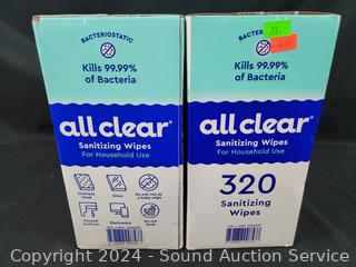 Lot #0073: (2) 320ct All Clear Household Sanitizing Wipes