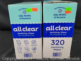 Lot #0068: (2) 320qt All Clear Household Sanitizing Wipes