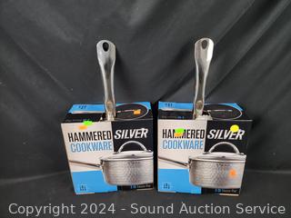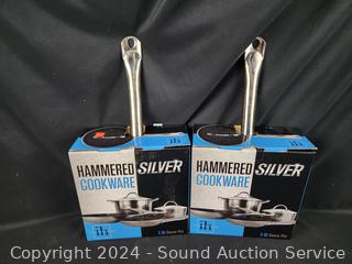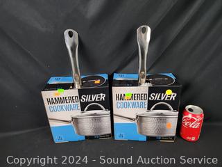 Lot #0105: 2 Hammered Silver 2qt Sauce Pans