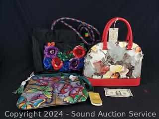 Anuschka Butterfly, Dan W Nylon, Isabelle Abstract (still has original $80 price tag). Approx. 12" x 14" to 12" x 17". Don't see any issues.