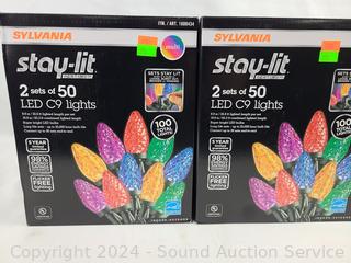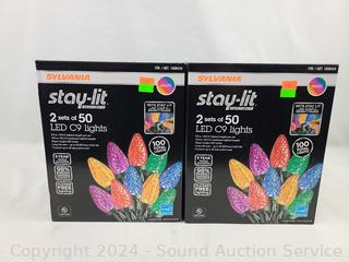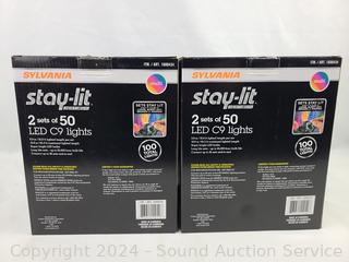 Lot #0252: 4 Sets of Sylvania Stay-Lit 50 LED C9 Multi-Color String Lights