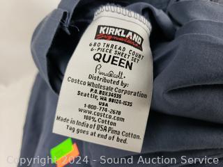 Lot #0223: 4pc Kirkland Queen Navy 680TC Cotton Sheet Set