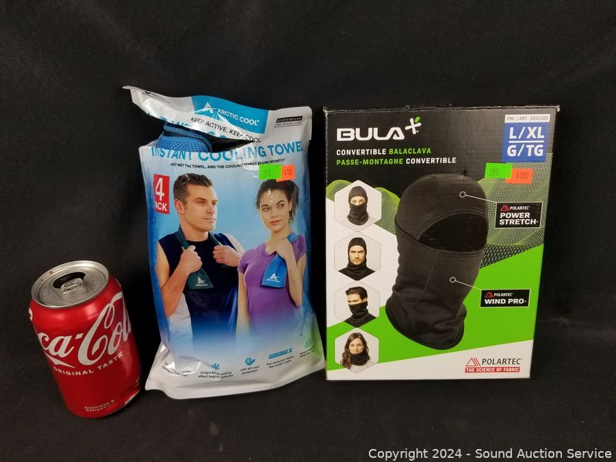 Lot #0206: 4pk Arctic Cool Cooling Towels & Bula Convertible Balaclava S:L/XL