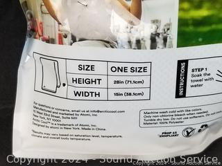 2 blue & 2 gray towels, 15" x 28". Don't see any issues.