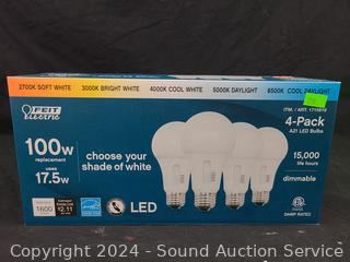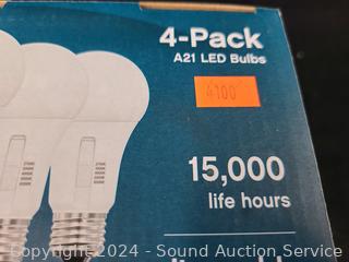 Lot #0218: 4pk Feit LED A21 Dimmable Light Bulbs