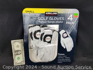Lot #0205: 4pk Kirkland Premium Cabretta Leather Golf Gloves S:Sm