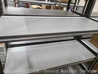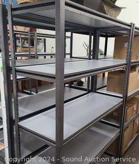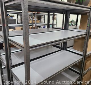 5 Gray laminate shelves. In great cosmetic condition. 72" H x 48" x 18".