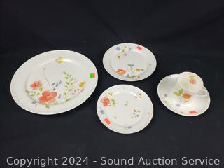 Lot #0080: 5pc Service for 8 Mikasa "Just Flowers" Bine China Dish Set