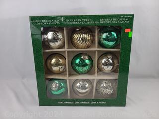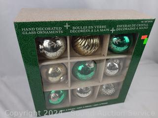 Lot #0254: 9pk Hand Decorated Glass Christmas Ornaments