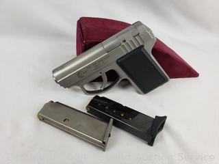 Made in USA. Caliber: .380, Capacity: 5+1, Type: Sub-Compact, Weight 18oz (510g), Length 5.75" (146mm), Barrel: 3" (76mm). Serial# TCY93185, ID# 01897586. In great cosmetic condition, appears to be in firing condition. Comes with 2 fully loaded magazines with hollow points & original box.