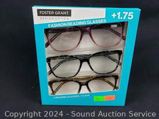 Lot #0214: Foster Grant Fashion +1.75 Reading Glasses w/1 Case