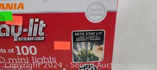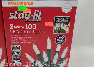 Lot #0156: (2) 2pk Sylvania Stay-Lit 100 LED Pure White Mini Light Sets
