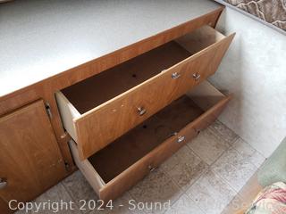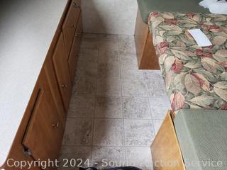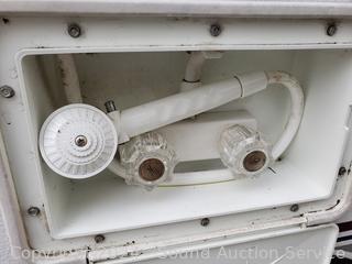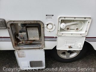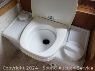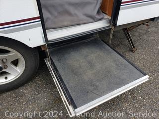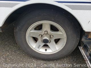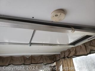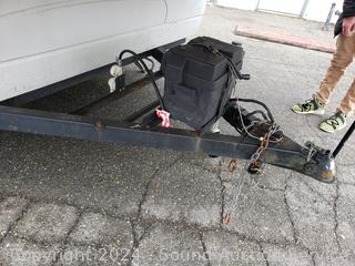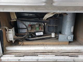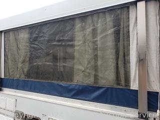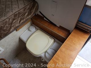 VIN#4CE689F1667287037. Comes with a clean title. Comes with a note from consignor detailing the trailer here is said note "Trailer base, wheels & jack are good; covered spare tire; has 2" ball coupler crank mechanism replaced in 2015 and works well. Comes with owner's manual. Battery is good and holds a charge; electrical system works; comes with plug in cable in a storage space under table seat. Porta potty is pristine (never been used), hot water heater works (sometimes cranky to start; outside shower works. Sink works well, is deep and has a swivel faucet. Stove works well. Cantilever is off kilter but can still raise & lower sink stove. Catches on counter so counter corners cracked off and molding is coming off. Table in OK condition. Table when down makes a single bed. Cushions in OK condition. Drawers slide well but are scratched in places. Front pulls out into a queen bed; mattress is in fair condition. Back Pulls out to a double bed. Screen door works OK (sometimes hard to get all the clips fastened). Fold-out door step-side is good. Storage bin under door contains crank, propane tank holders, lug wrench. Heater (not sure if it works; didn't use), Refrigerator doesn't work. Sun awning blew off so separate, no longer attached. inside curtains have many holes. Door side screening has major hole patched with duct tape. Hard top roof has some dimples & one small hole patched with duct tape (Did not leak the last time consignor used it) . Canvas is separating from hard top". Stakes for pullouts on one side seem short, has a musty odor.