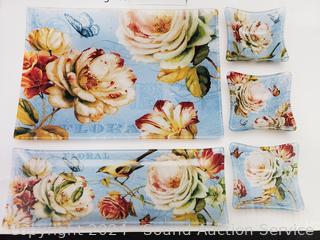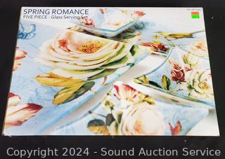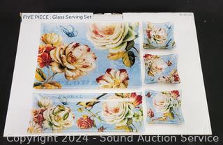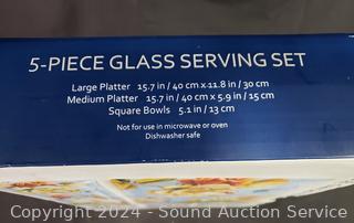 Lot #0104: 5pc Glass Serving Platter & Bowl Set