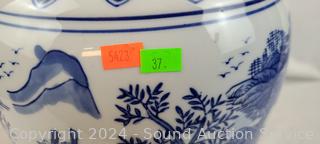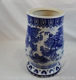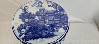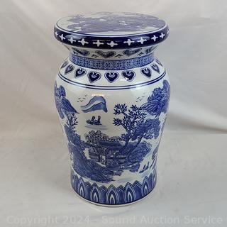 Lot #0037: Blue/White Porcelain Garden Stool / Plantstand