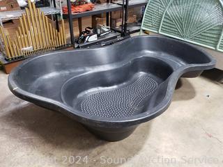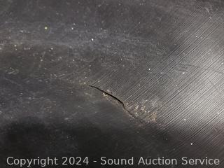 17.5" H x 87.5" x 38.5" to 56.5". Has a crack on the tier. Don't see any other issues.