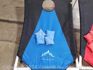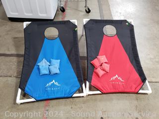 Comes with 4 red & 4 blue beanbags, 2 boards. Some weathering wear.
