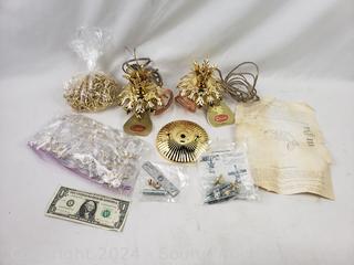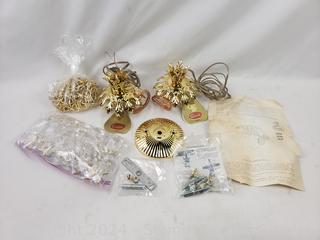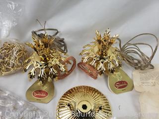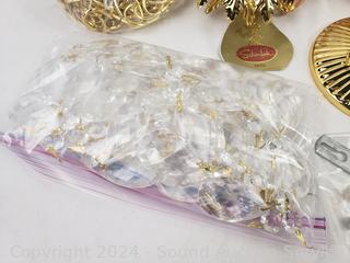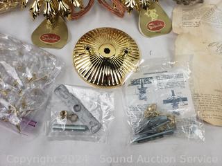 Gold finish with crystal prisms. Unsure on the length. Comes with a length of chain. Appears unused. Appears to be functioning as intended.