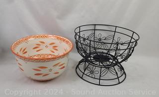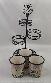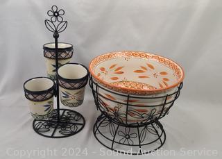 Lot #0101: Temp-Tations "Old World" Ceramic Flatware Holder & Bowl w/Rack