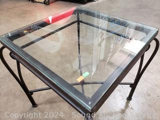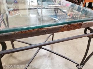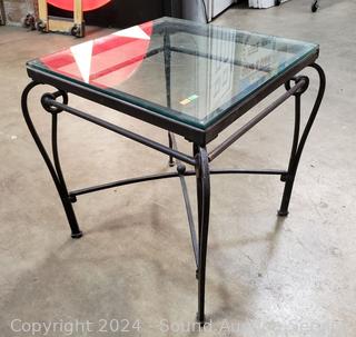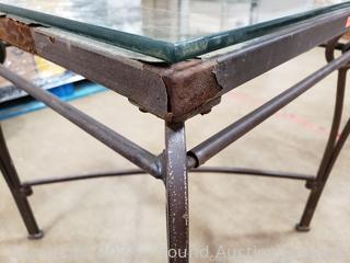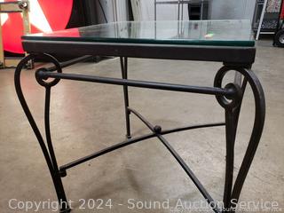 Lot #0126: Wrought Iron Glass Top Accent/Side Table