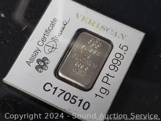 Lot #0073: 1g 999.5 Platinum Bar Swiss Made