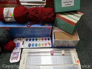 Laminator, yarn, spray enamel, cutter, paints, paper etc. Refer to photos for more details.
