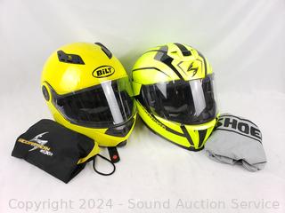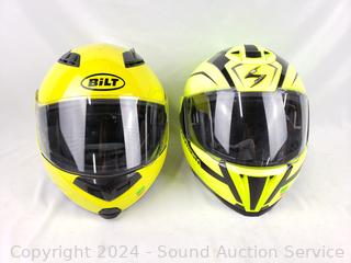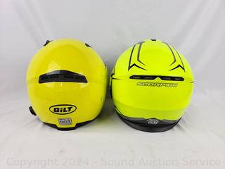 Lot #0137: Bilt & Scorpion Neon Full Face Motorcycle Helmets S:XL