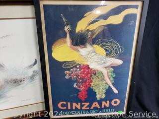 Leopards signed Ralph Thompson, unsure if original or litho, 28" x 22". Cinzano advertisement, 17" x 22.75", has a damaged corner.