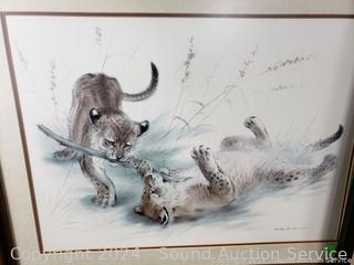 Lot #0060: Signed Leopard Painting & Vtg. Framed Advertisement