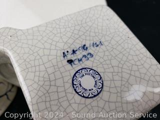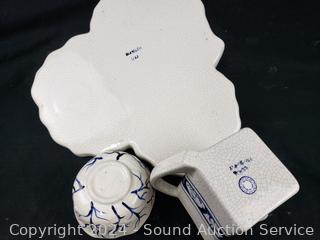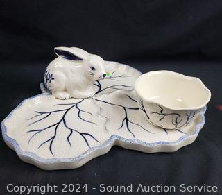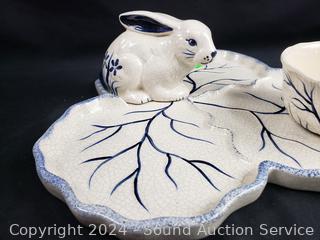 Lot #0111: Vintage Dedham Pottery Rabbit Chip/Dip & Pitcher Set