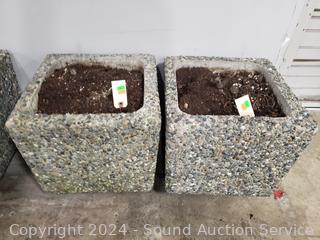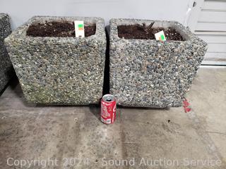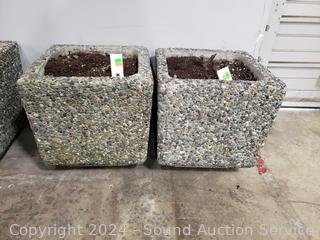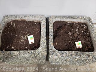Lot #0008: 2 Exposed Concrete Planter Pots w/Soil