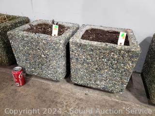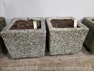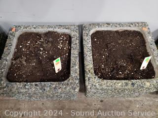 Lot #0010: 2 Exposed Concrete Planter Pots w/Soil