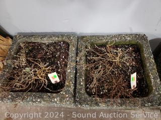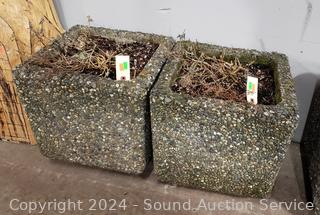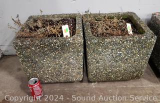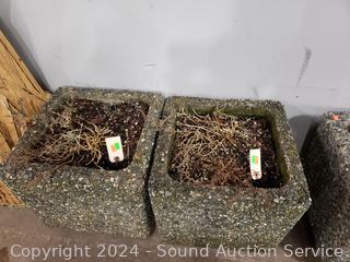 Lot #0012: 2 Exposed Concrete Planter Pots w/Soil