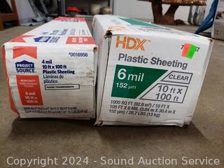 HDX 10ft x 100ft x 6 mil & Project Source 10ft x 100ft x 4 mil. Both appear to be sealed, full.