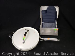 Lot #0199: 4pc KitchenAid Oven Mitts/Potholders & Tramontina 12" Skillet w/Lid