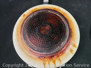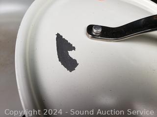 Pan has various wear from use, one potholder has s small hole in seam, don't see any other issues.