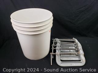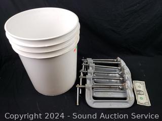 Lot #0086: 6 Large 6" C-Clamps w/5 Gallon Bucket
