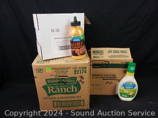 Lot #0143: 6pk Hidden Valley Ranch Dressing, 18LB Dressing & Seasoning Mix, 6pk Ranch Cajun Secret Sauce