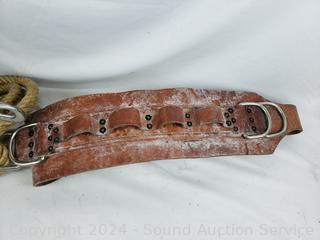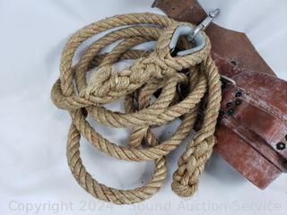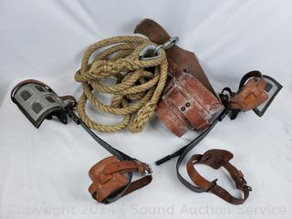 Lot #0264: Climbing Spikes, Leather Belt & Rope