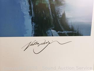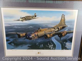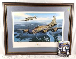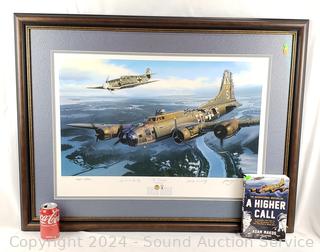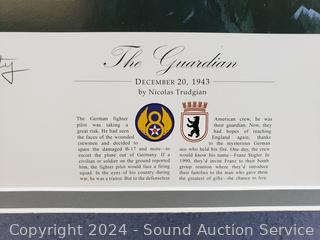 Signed by artist Nicholas Trudgian & pilots? Titled "the Guardian" Dec. 20, 1943. Comes with the book "A Higher Call" which describes the heroic deeds of the image portrayed. Limited #ME160/490. Professionally framed, matted with glass, 30.5" x 39.5".