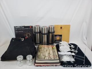 Columbia Snow pants S:M, Vacuum insulated Steel Travel Bottles, Native Literature, Jar, Stands, Plume Feathers. Refer to photos for more details.