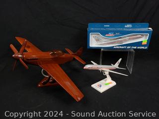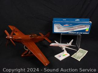 Lot #0039: Wood Aircraft Sculpture & 2 Boeing Plastic Model Planes