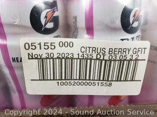 (1) 12pk Koe Kombucha Watermelon 12oz beverages, don't see a best by date. (2) 12pk Gatorade Fit Citrus Berry 16.9oz Drinks, best Nov. 30, 2023. Was factory sealed, opened 1 to see best by date & ounces.