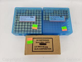 Lot #0108: 168ct 9mm Hornady 115GR HP Ammunition w/Cases