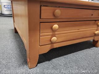 Various scuffs, wear to finish, top drawer is felt lined. 18' H x 36" x 36".